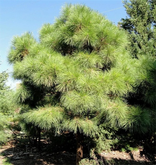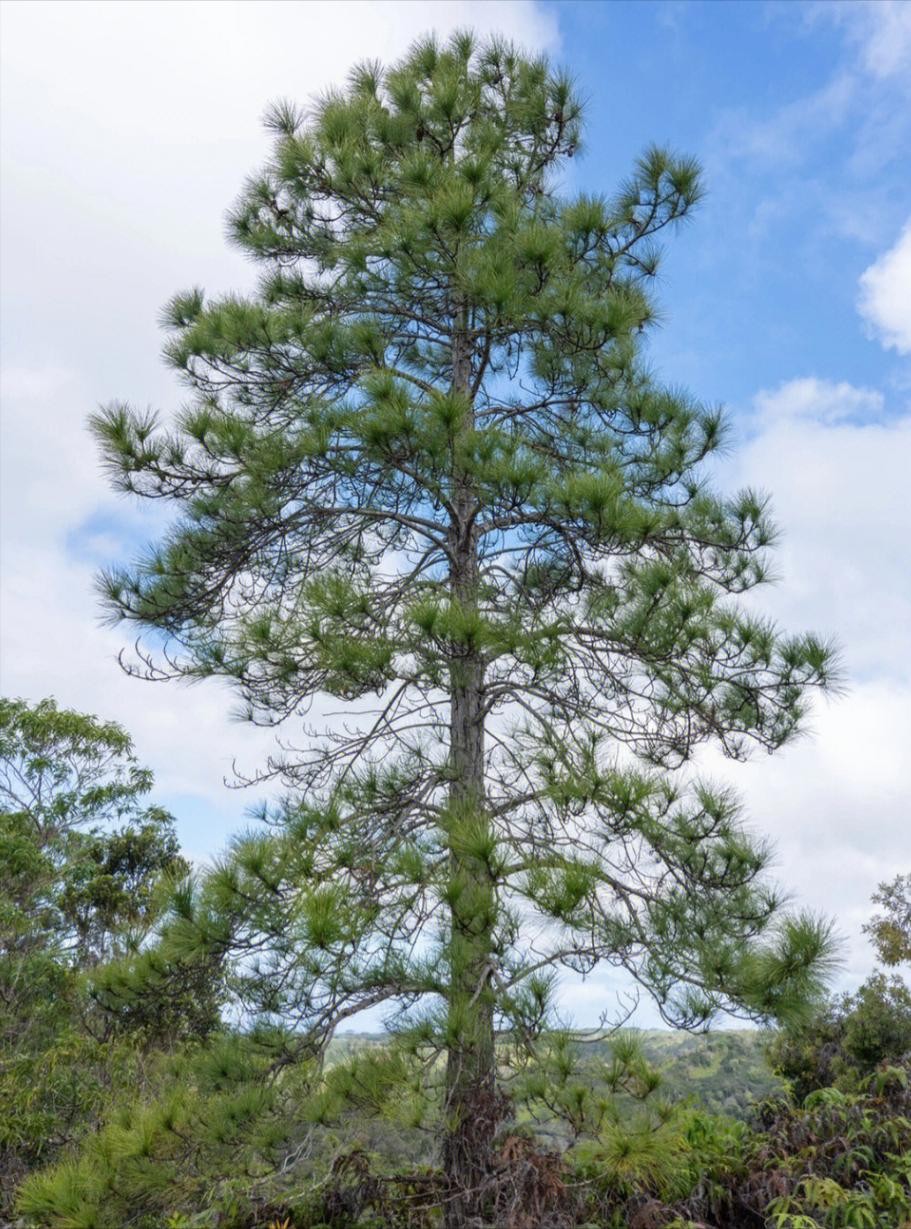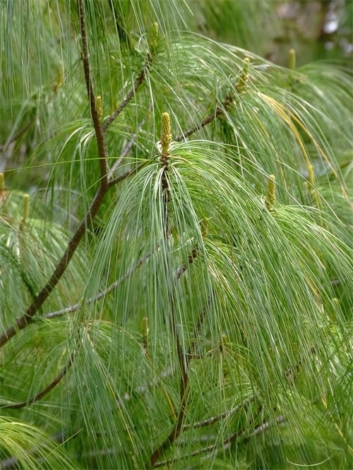 加勒比松别名古巴松,松科松属乔木,高达45米,树干枝下高达20米,树冠广圆形或不规则形状,树皮灰色或淡红褐色;针叶通常3针一束,稀2针一束,幼时多为4-5针一束。为喜光树种,抗风力较强,对土壤适应性广,一般山地土壤均适宜生长。