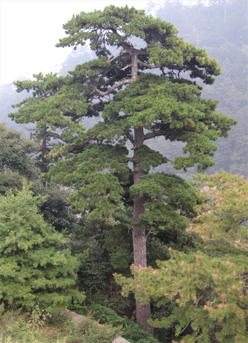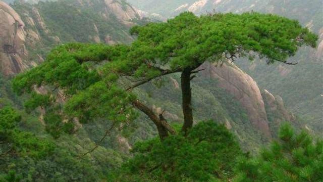 黄山松,松科松属常绿乔木,树高30米,树皮深灰褐色,枝平展,老树的树冠平顶;针叶2针一束,稍硬直。因这一新树种在黄山首次发现,所以用“黄山松”来命名。1961年,著名林学家郑万均等人发现黄山松与台湾松为同种,于是将两树种合并,仍保留“黄山松”的名称。是中国特有的树种,适合植于山丘风景区和山林绿地中,黄山松名列“黄山四绝”之首,历来有“无石不松,无松不奇”之美誉,是《世界遗产名录》中“十大名松”之一。