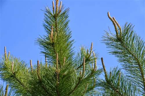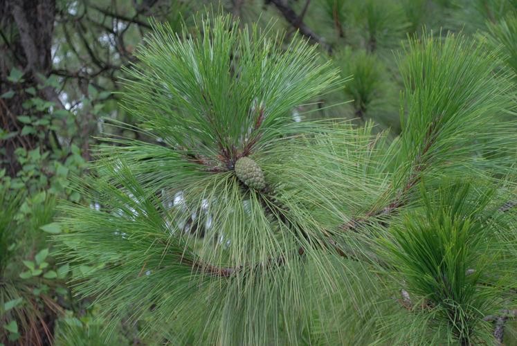 云南松别名飞松、青松、长毛松,松科松属乔木,高可达30米。树皮褐灰色,深纵裂,枝开展,稍下垂,针叶通常3针一束,稀2针一束,常在枝上宿存三年,先端尖,边缘有细锯齿。分布于西藏东部、四川西部及西南部、云南、贵州西部及西南部和广西西北部,多用于绿化造林,通常形成大面积纯林。