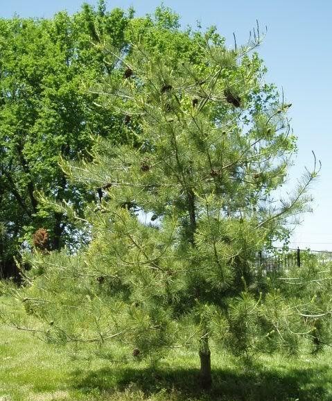 北美短叶松别名班克松,松科松属乔木,高达25米,树皮暗褐色,枝近平展,树冠塔形。针叶2针一束,粗短,通常扭曲,先端钝尖,边缘全缘。原产于北美东北部,黑龙江、辽宁、北京、山东、江苏、江西及河南等地均有引种栽种。抗寒、抗旱能力很强,树枝扭曲、枝叶繁茂、姿态优美,是良好的园林绿化树种。