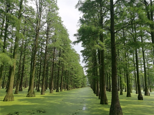 湿地松,松科松属常绿大乔木,树干通直,高25-35米。树皮灰褐色,针叶2-3针一束,刚硬,深绿色,边缘有锯齿。湿地松原产美国东南海岸,中国长江流域至华南地区广泛引种栽培。适应性强,多用作风景林和水土保持林,其木材可供建筑、枕木、坑木以及木纤维、造纸工业原料用。