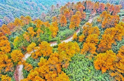 落叶松,松科落叶松属乔木,高可达35米,冬季叶脱落。幼树树皮深褐色,老树树皮灰色、暗灰色或灰褐色,剥落后内皮呈紫红色;枝斜展或近平展,树冠卵状圆锥形,叶倒披针状条形,先端尖或钝尖。主产于中国东北大、小兴安岭等地。落叶松材质优良,是良好的电杆、枕木、桥梁、矿柱、造船、车辆、造纸和建筑用材,也是高山地带森林更新和荒山造林较好的树种。