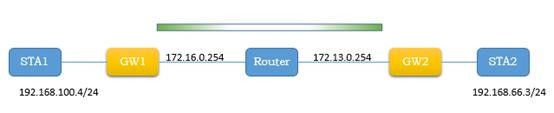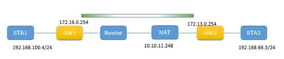 期望在GW1与GW2两个网关(IPsec实体)之间建立IPsec隧道,GW1内网中的192.168.100.0/24子网与GW2内的192.168.66.0/24子网之间(兴趣流)通过IPsec隧道实现安全通讯。