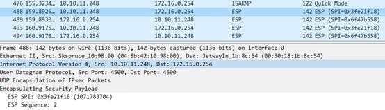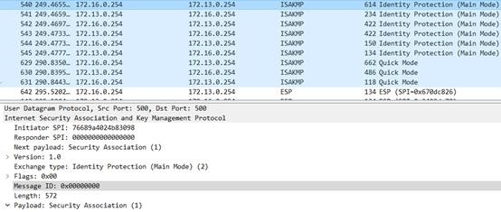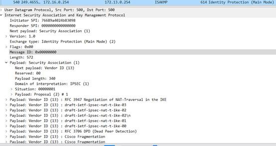 ISAKMAP消息1-4时,完成NAT穿越协商(报文的UDP端口为500), 在消息5-6以后,报文的UDP端口为4500.