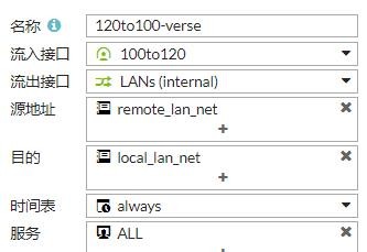 4. 设置IP策略(ACL规则):两条规则,一条是从本地内网流出到对端内网的报文规则; 一条是从对端经过IPsec Tunnel接口流入到本地内网的规则
