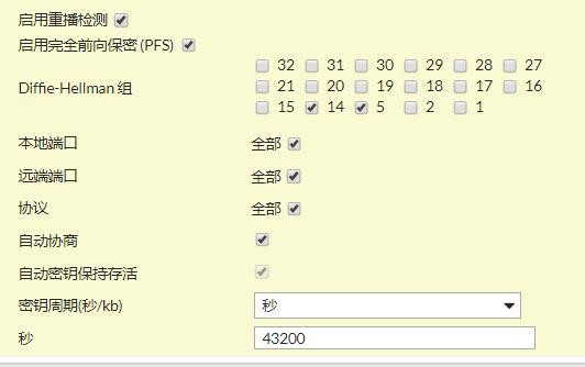 2. 配置阶段2兴趣流,支持加密方法, 支持DH组秘钥协商等.