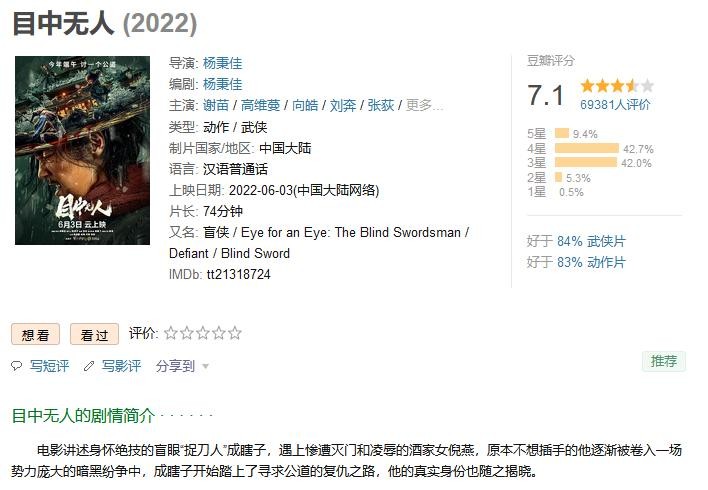 2022年,《目中无人》的播出,让谢苗再次占据网络电影排行榜榜单。