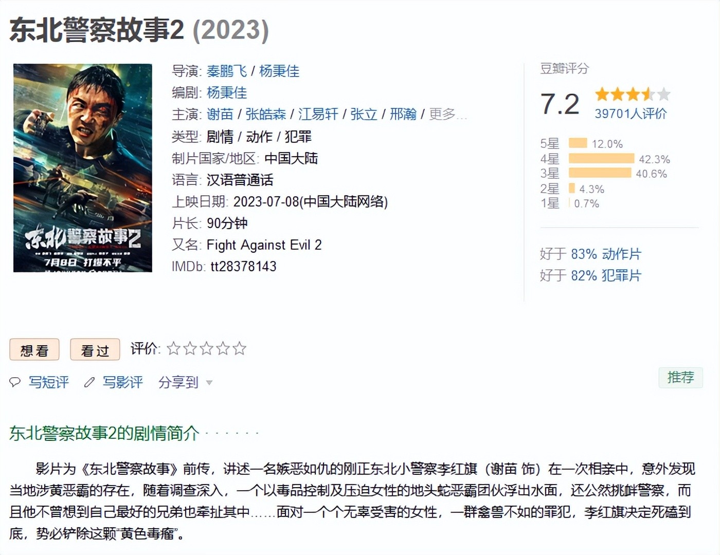2023年,《东北警察故事2》自上映之后,好评如潮。