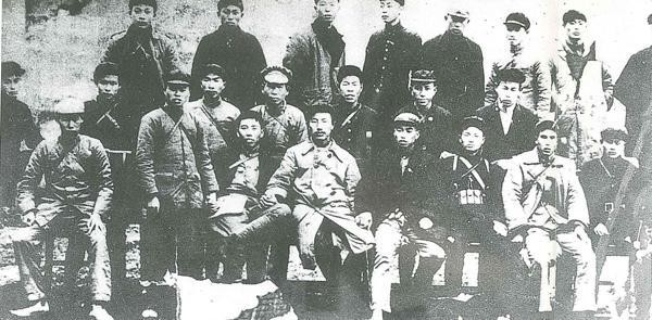 红六军团将领合影。前排左起:周仁杰、李铨、王震、夏曦、萧克。