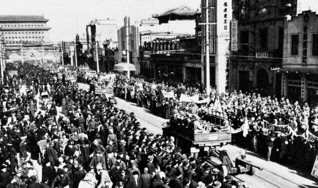 1949年1月31日,北平和平解放。图为人民解放军举行入城仪式。