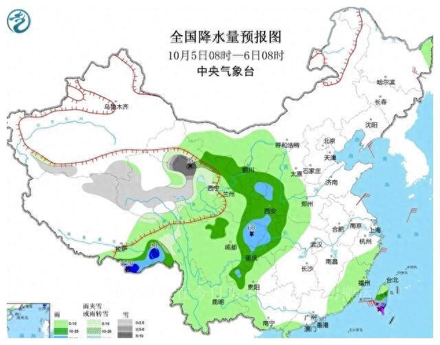 总之,10月5号的天气形势多变,青藏高原和新疆南疆等地已经迎来了降雪,而西北和西南地区东部则遭受了降雨和降温的双重影响。与此同时,第14号台风在南海肆虐,给台湾岛带来了狂风暴雨。对于返程的人们来说,道路将变得湿滑危险,自驾出行必须慎之又慎,并随时添加衣物以保持温暖。