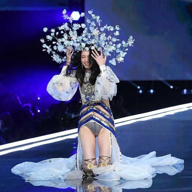 2017年,维多利亚的秘密在上海举办大秀,奚梦瑶一摔成名。