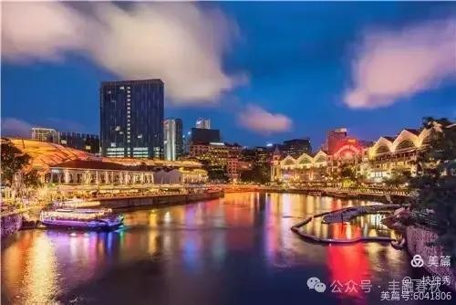 3、新加坡河被成为“新加坡的母亲河",这里的夜景最为绚烂。高楼的灯光洒在河面上,河水显得碧波鳞鳞。雨在高楼灯光的照耀下,滴滴闪着银光。仿若置身于爱丽丝的梦游仙境,不知白昼黑夜,不知天上地下。