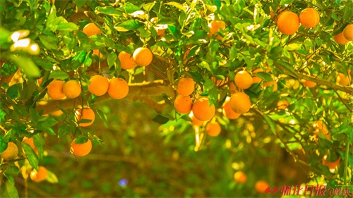 (一颗颗金黄的冰糖橙挂满枝头,让人垂涎欲滴。)