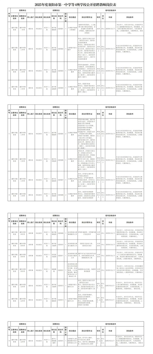 2025年度襄阳市第一中学等四所学校公开招聘教师公告