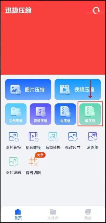 只需要打开软件首页,选择“解压缩”功能,从手机上选择需要处理的文件;