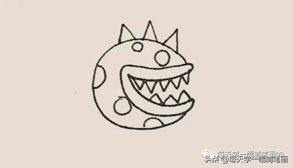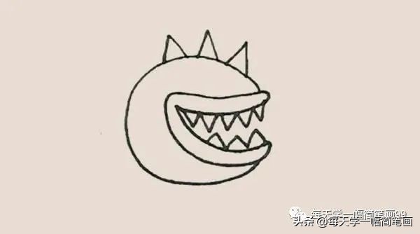第四步:嘴里和头上画上一些三角形作为牙齿和刺。