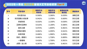 从晚间综艺来看,湖南卫视的《时光音乐会》成为1季度视听大数据中收视率最高的节目,《欢乐大篷车》《你好,星期六》也同样上榜。
