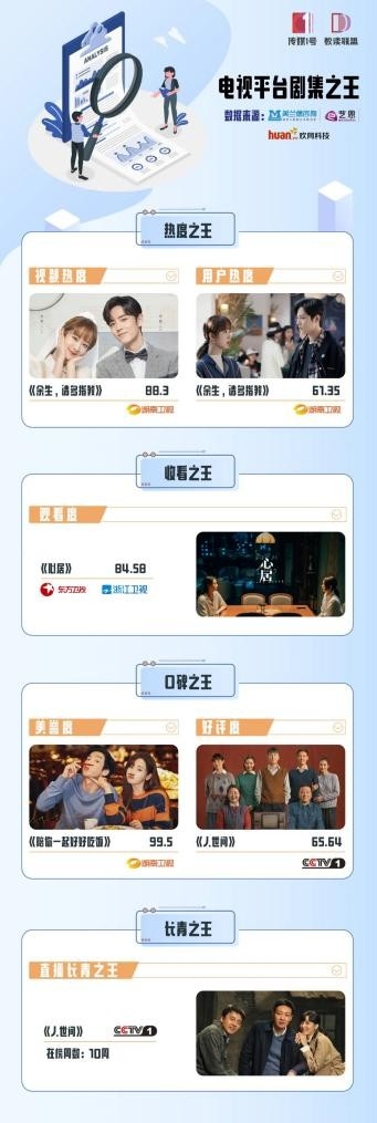 其中《余生,请多指教》则包揽视频热度与用户热度,以真实情感戳中都市青年人的爱情感悟。《陪你一起好好吃饭》则以美食作为线索,聚焦二十一世纪年轻人的孤独以及爱情百态,暖愈甜爱的定位风格也在年轻观众群体中揽获共鸣,以99.5的美誉度获得口碑之王。