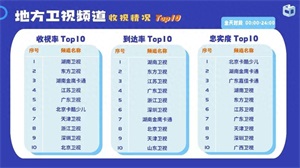 省级卫视收视率、关注度排名:湖南卫视持续独占榜首