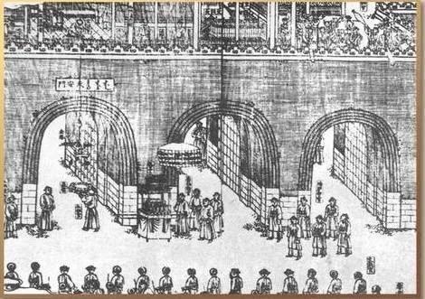 城门前面是一条与故宫想通的金水河,河上有五座桥,名金水桥。天安门两侧,早先,东面有长安左门,西面有长安右门,南面是大华门,已被拆除。