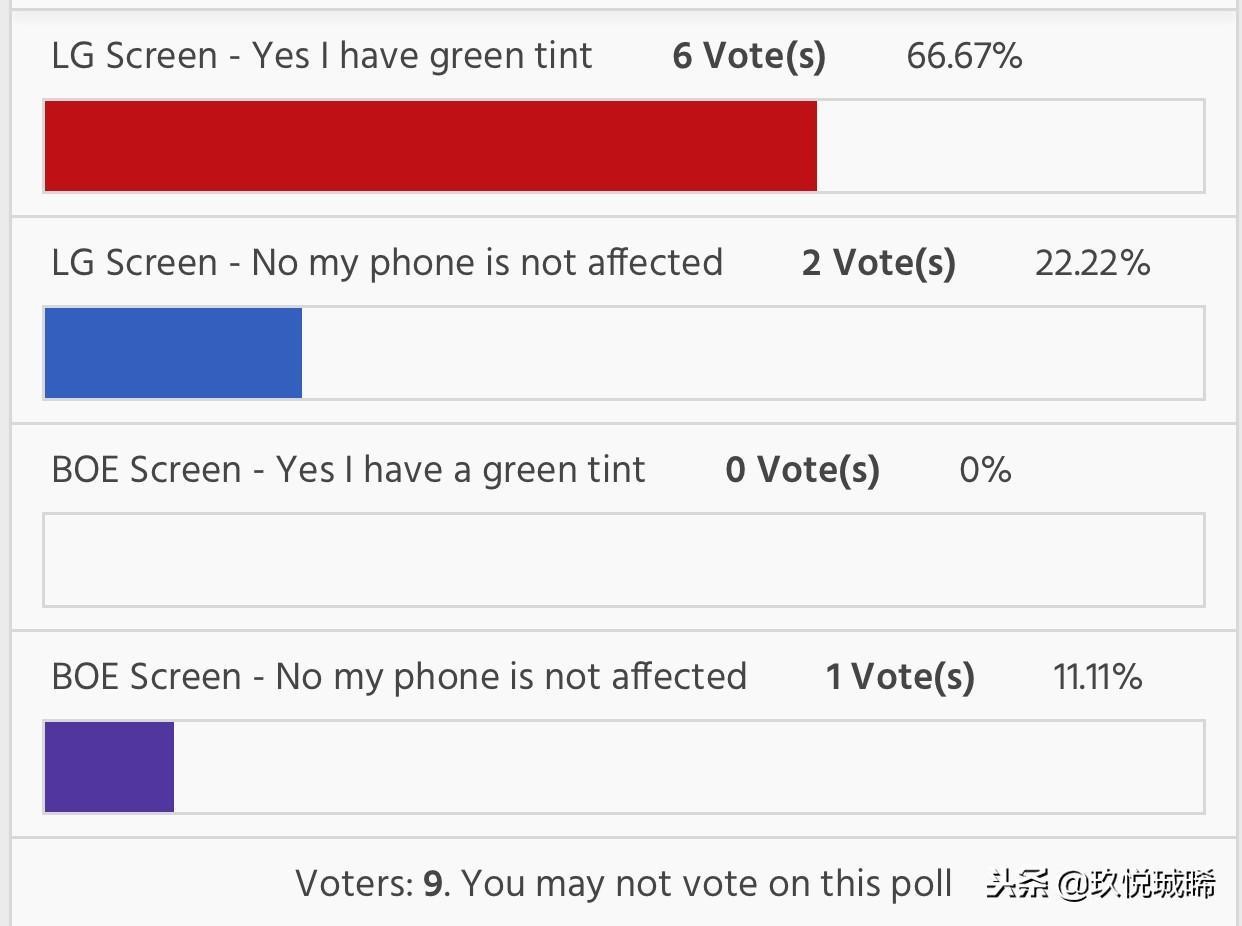 XDA论坛上的关于20 Pro屏幕绿屏的投票,9人投,仅供参考