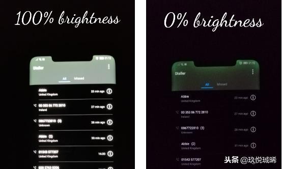 测试条件:无光情况,亮度设最低,背景为黑灰色。