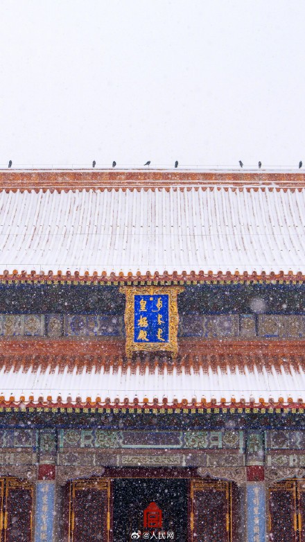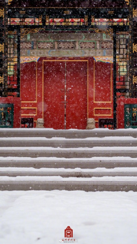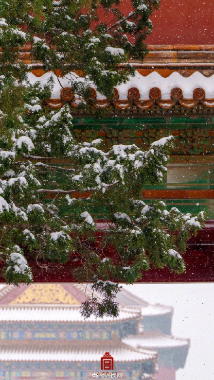 今日北京降雪仍在继续,白雪与红墙交相辉映,让人心生欢喜。@故宫博物院