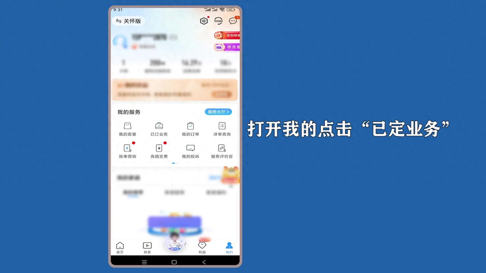 ·打开我的,点击已定业务,进入已定业务,点选增值业务。