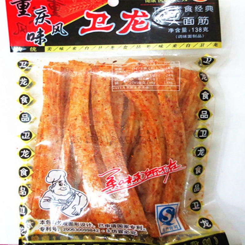 3,卫龙大面筋:这个看起来量就很足的样子,这款辣条我能吃一上午,在当时也算是美味又实惠的一款辣条,一次吃一两根,然后折起来放着,随时都能解馋。