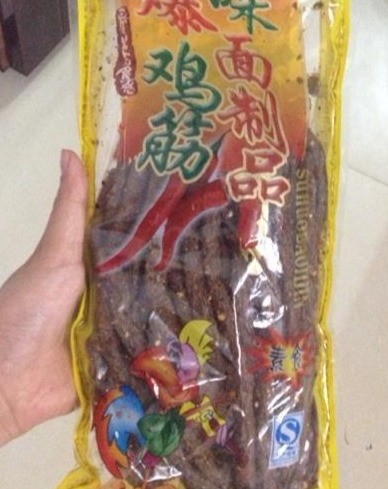 1,火爆鸡筋:在我的记忆中,这款辣条是大包的,一角钱一根,对于当时手里一天两毛的我来说是个不错的选择,味道也还不错。随着经济的发展,一角一根的早都停产了。