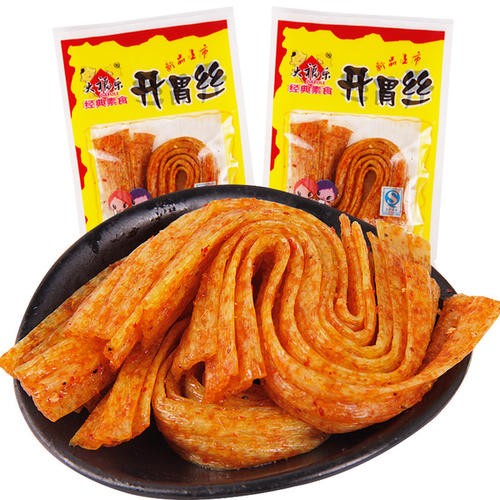 17,开胃丝:开胃丝表面看着油光光的,很有的样子,因为是一条条的,只需要咬一小口就行,所以就不会有油油的感觉。这款辣条味道也很不错哦。