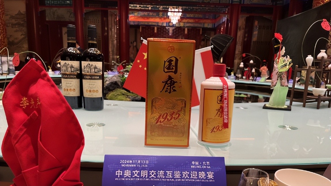 在中奥文明交流互鉴欢迎晚宴上,国康1935荣耀登场,成为晚宴招待用酒。它承载着东方韵味,酒液醇香,每一口都是品质的彰显。这不仅是味蕾的享受,更象征着文化交融,在国际交流舞台上,国康1935宛如文化使者,传递美好。