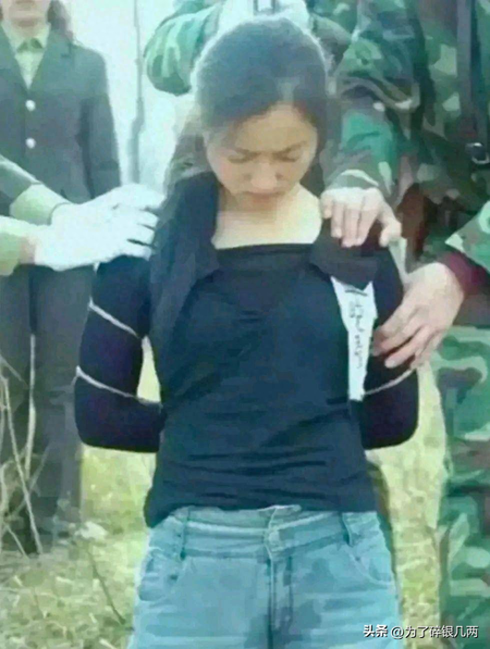 90年代,在郊区的一个刑场,一名年轻的美女正在准备执行死刑,在当年死刑都是枪毙,先验明正身,然后穿上一身干净整洁的衣服,双手绑在背上,然后跪在地上,有执行的武警在后面执行枪决。