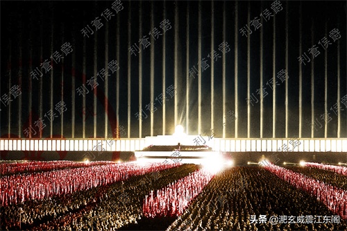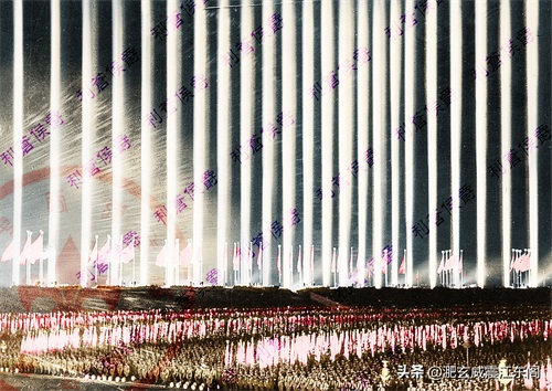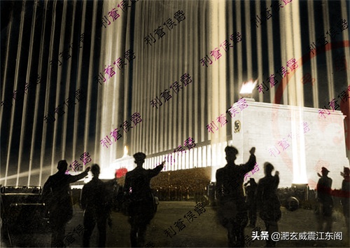 当年纳粹为了实现它,动用了德国空军多达130架的防空探照灯,那几乎是当时刚重建的德国空军的全部家底,每架探照灯的放置间隔为12米,全部对着天空垂直照射,在会场的周围构筑起了一圈宏伟的通天光柱,仿佛是以天空为屋顶的神圣宫殿的柱子一样。