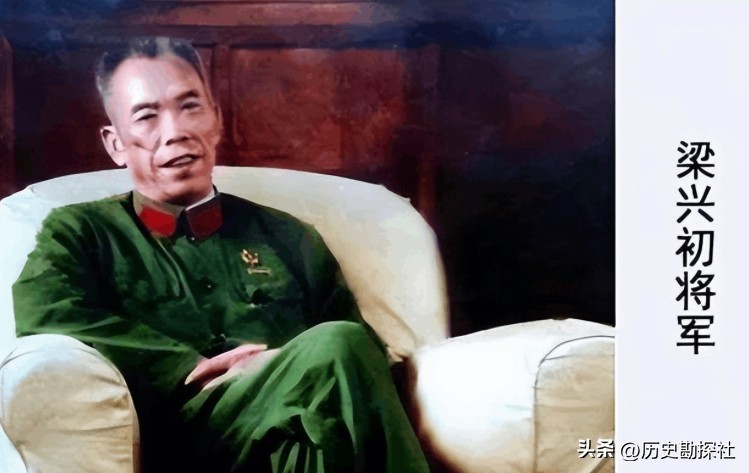 年轻时候的梁兴初还真挺帅气,一身笔挺的西装衬的他英姿飒爽,他的面容严肃且坚定,目光如炬,直视前方,有一种军人不屈不挠的气质,表情庄重,姿态威严,仿佛做好了随时为国家和人们献出自己的一切。