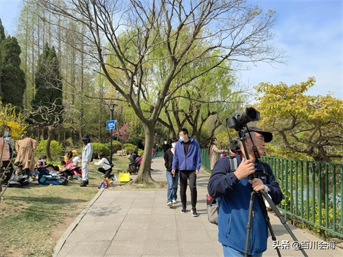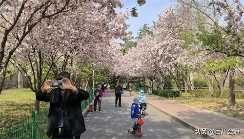 四月的李村公园,最靓丽的风景莫过于公园南侧的网红路海棠大道了。海棠大道长200多米,道两旁的海棠树枝蔓在空中交织,遮天蔽日。海棠盛开,满树艳红,一树树海棠花争奇斗艳,占尽春色,微风吹来,树枝摇拽,婀娜多姿,飘飘洒洒的花瓣,洒满路面,美不胜收,伴随着阵阵花香,令人流连忘返。游人们纷纷拍照留念,永留这春日的美好。