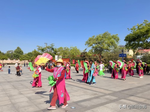 中心广场北侧是李村公园大家唱,每天上午九点开唱,既有小合唱,也有个人才艺展示,很多人前来围观欣赏。