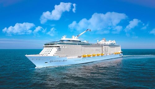 海洋量子号是个高科技游轮。总吨位十六万八千吨,长度三百四十八米,宽度四十一米。它有十八层甲板,能装下将近五千号人,有乘客也有船员。海洋量子号有好多创新的设施,像那个北极星观景台,能把乘客升到离海平面九十二米的高空,能俯瞰壮丽得很的海景。船上还有模拟跳伞的设施、机器人调酒师啥的。餐厅有各种美食,酒吧有丰富的饮品能选,娱乐设施有剧院、电影院、赌场啥的,能满足乘客不同的需求。