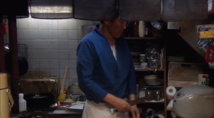 实际上电视版一开始就隐隐交代了这个"事实"。小龙第一次去店里打算收保护费,店主的持刀方式是,刀刃向上,藏入背后,一般的厨师哪里教过这种动作?