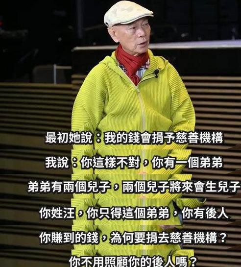 汪明荃曾萌生出将财产捐赠给慈善机构的想法,这一善举却遭到了罗家英的极力反对。在罗家英看来,汪明荃虽无子女,但有一个弟弟,弟弟又育有两个儿子,他们同样姓汪,应当把大部分财产留给他们,以延续家族血脉。这一观点,反映了中国人自古以来重视家族传承的传统观念。
