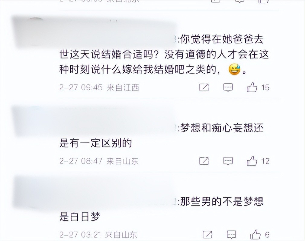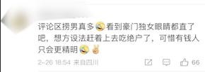 评论区恶俗男真多,看到豪门独女眼睛都直了,完全忘记了自个的身份地位,那些p图结婚照和各种求爱的,完全只是自欺欺人啊!