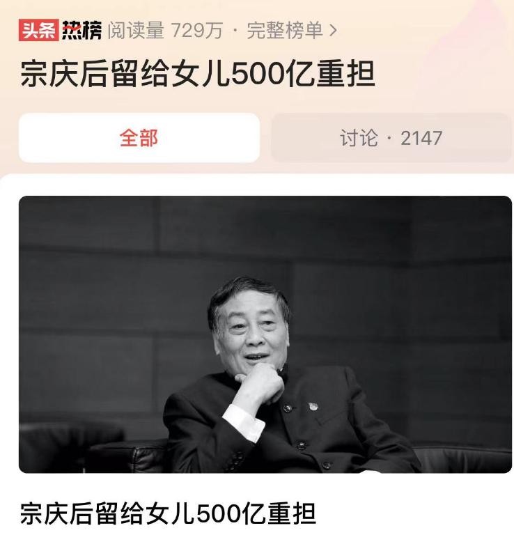 而现在,宗老去世了,有知情人查看了胡润女企业家排行榜,将宗馥莉原本的资产和现在继承父亲的娃哈哈商业帝国加在一起,发现宗馥莉的资产已经近乎千亿元。