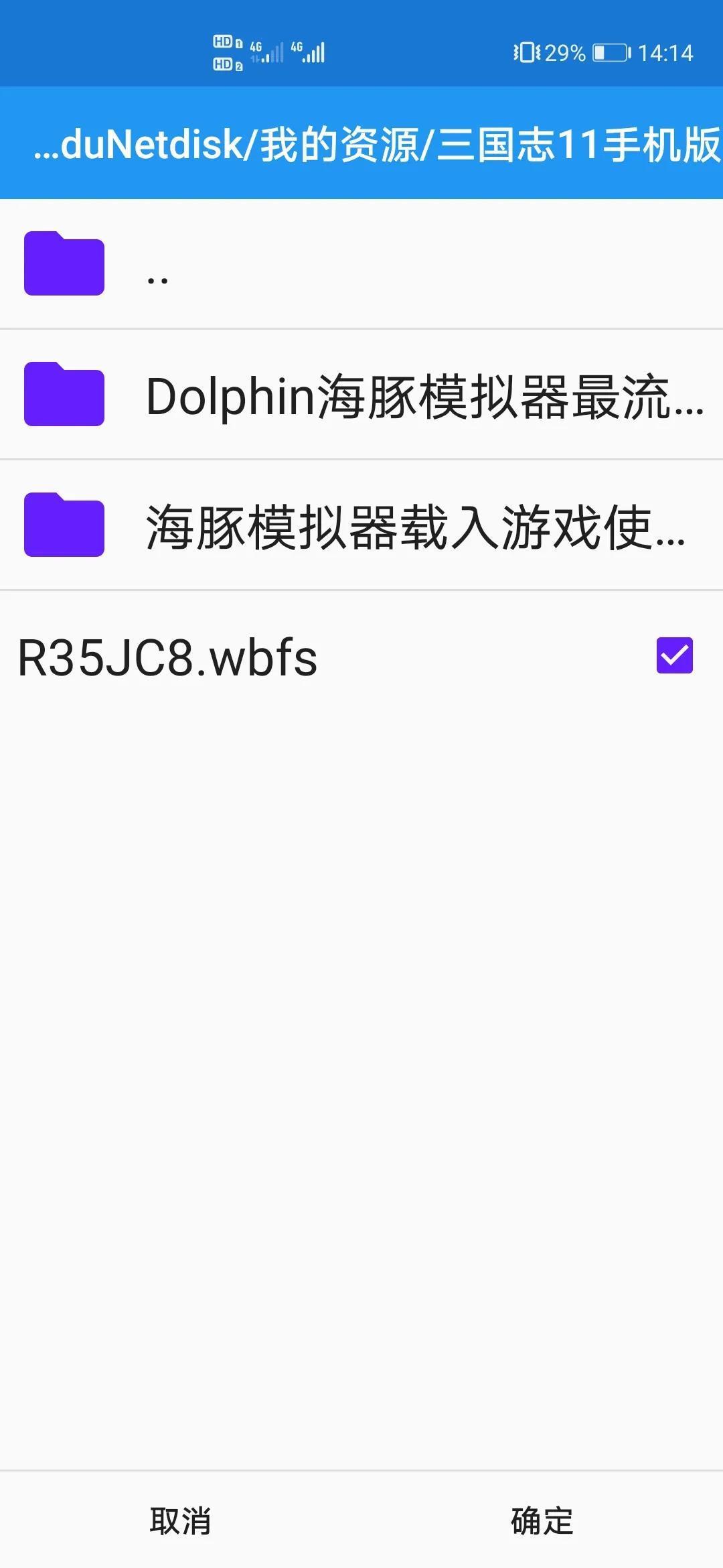 第二步:点击右上角的三个点,出现一个二级菜单,选择打开文件,出现文件菜单,找到自己下载的主程序,点击 勾选然后确认,就自己打开游戏了。