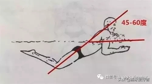 抬头注意头部、身体、大腿呈一条直线与水面的角度