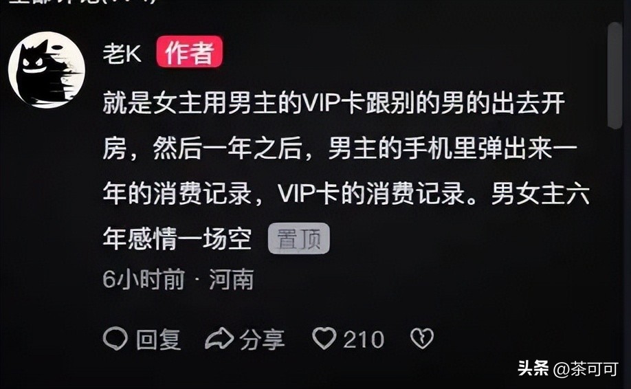 就在大家以为他们即将迎来爱情的结晶的时候,却发生了一件让人意想不到的事情。因为一次偶然的机会,小明发现了女友利用自己的VIP卡在酒店开房的消费记录,而且对方的消费记录竟然不止一次。