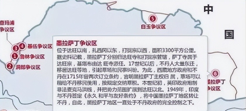 位于达旺以南,扎西冈以东,打拢宗以西,面积3300平方公里。据史料记载,墨拉萨丁分别归达旺寺和打拢宗管辖,萨丁寺属于达旺宗,基堪布由达旺寺派任。墨拉萨丁争议区相关地图 17世纪以后,不丹人大量东迁,移居达旺等地,引起草场和民事纠纷。为此,西藏地方政府和不丹在1715年曾两次订立条约,言明墨拉萨丁主权归属,草场可以租给不丹移民使用,按规定交纳草税。20世纪初,英印政府制定麦克马洪线,并把势力范围扩展到达旺以北。1949年,印度与不丹签定《永久和平与友好条约》,将中国墨拉萨丁地区转让不丹,自此,墨拉萨丁地区一直处于不丹政府的完全控制之下。