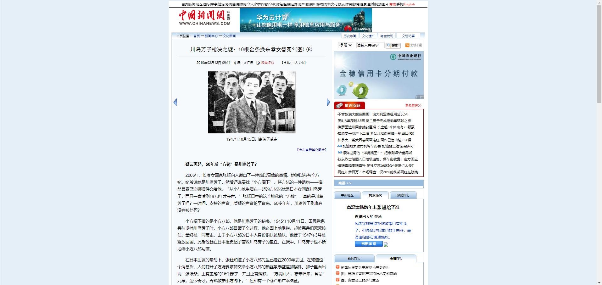川岛芳子枪决之谜:10根金条换来孝女替死?(图)(8)——中新网
