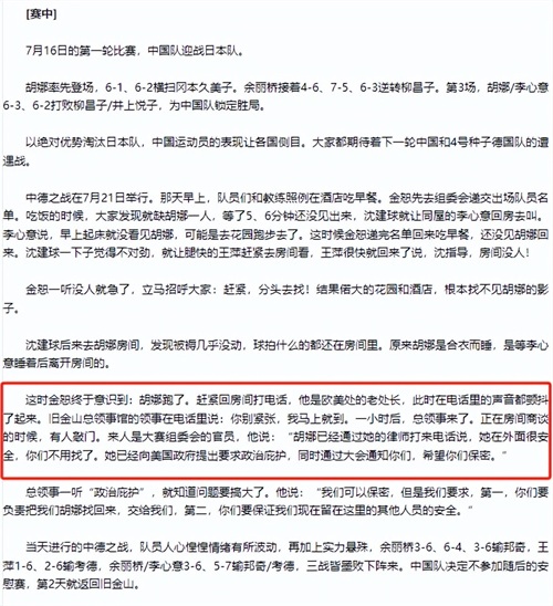 但随着时间的推移,胡娜依然没有出现,整个中国代表团开始陷入恐慌。