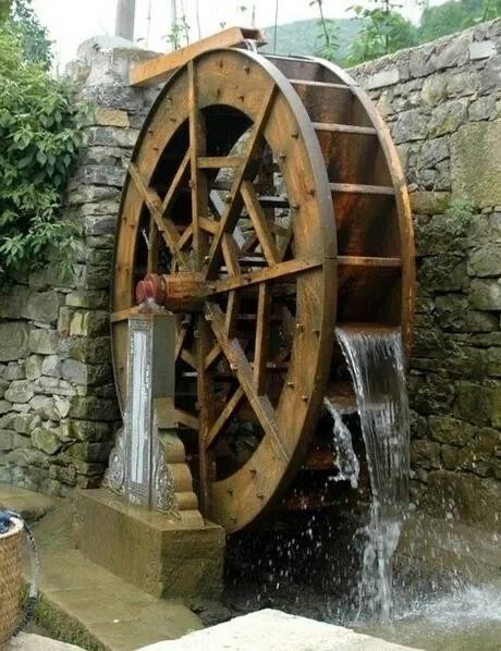 7、水车:水车是古代发明的一种水利工具,通过水力将水引入轮子,从而使轮子转动并带动机械,用于农业生产和工业制造等领域。